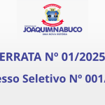 A Prefeitura do Município de Joaquim Nabuco/PE, informa a todos que será realizado o Processo Seletivo N° 001/2025 destinado ao provimento dos cargos temporários, na Prefeitura Municipal de Joaquim Nabuco – PE.